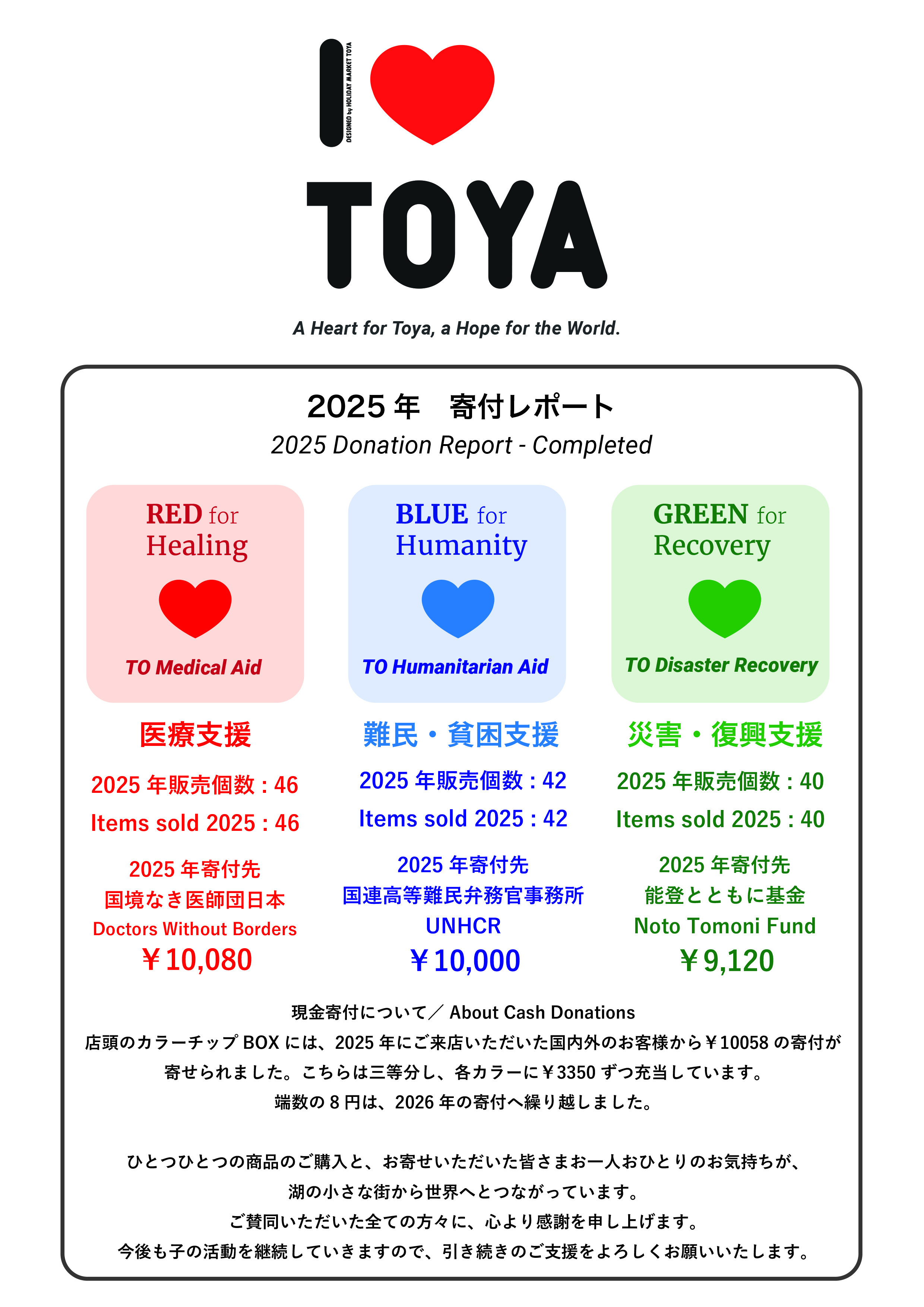 I♡TOYA CHARITY PROJECT--- 2025年 寄付完了のご報告
