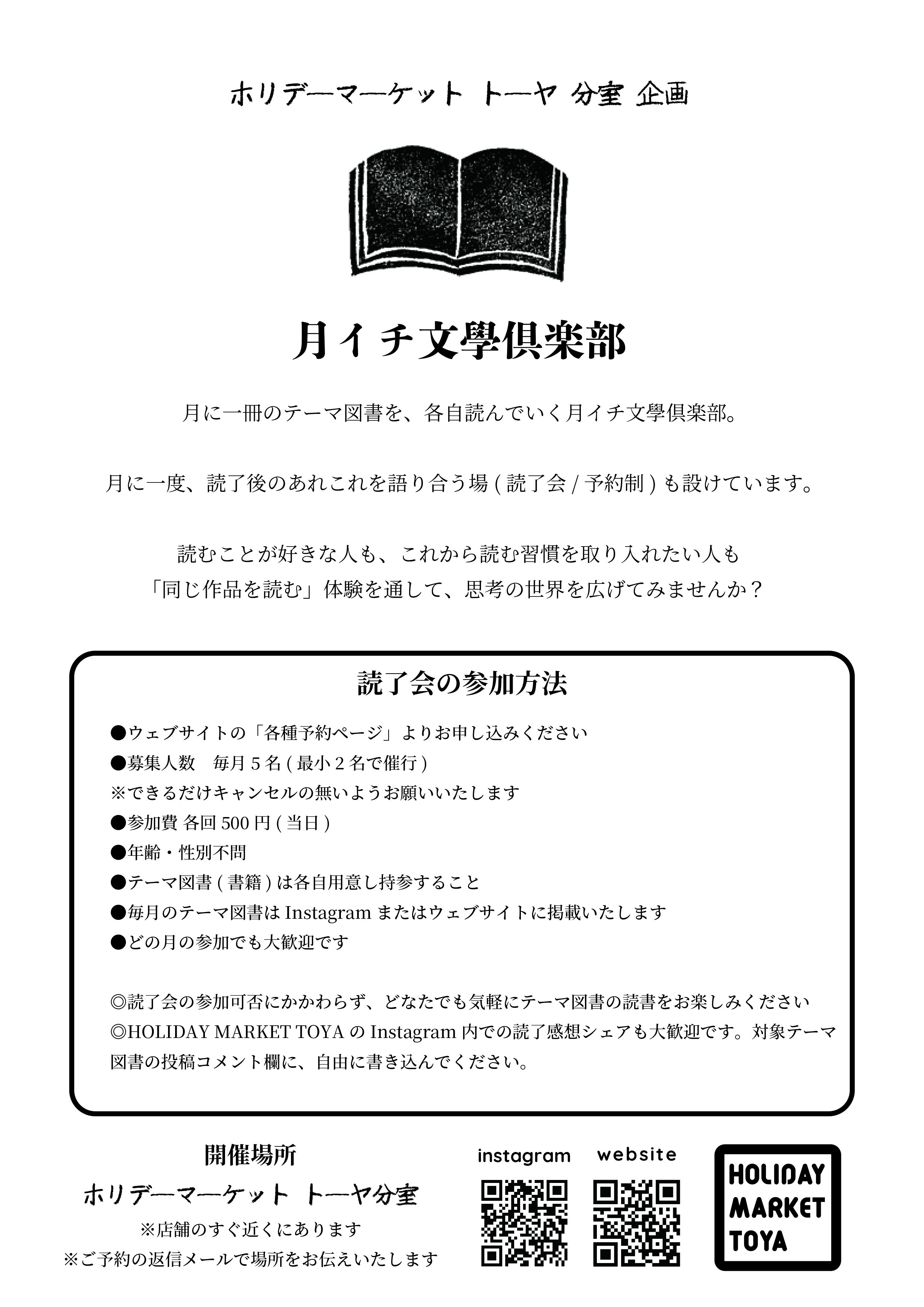 月に一冊のテーマ図書を、各自読んでいく月イチ文學倶楽部。
